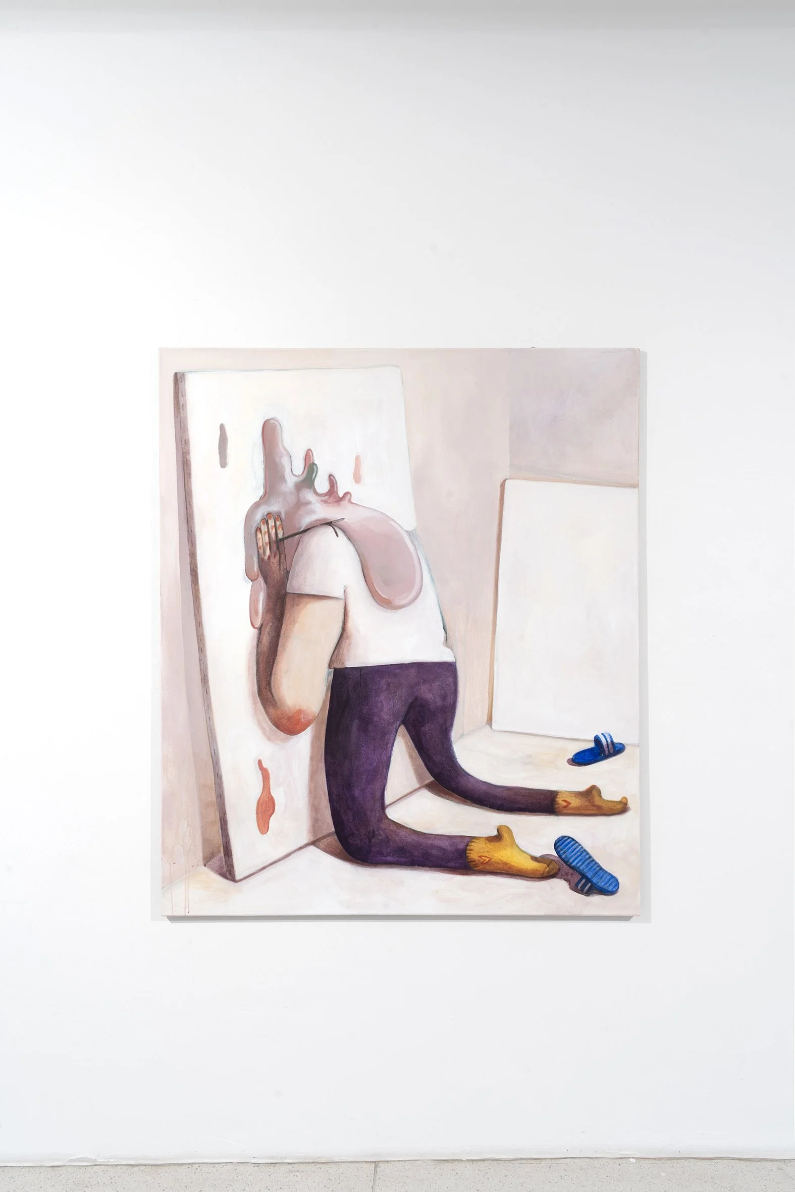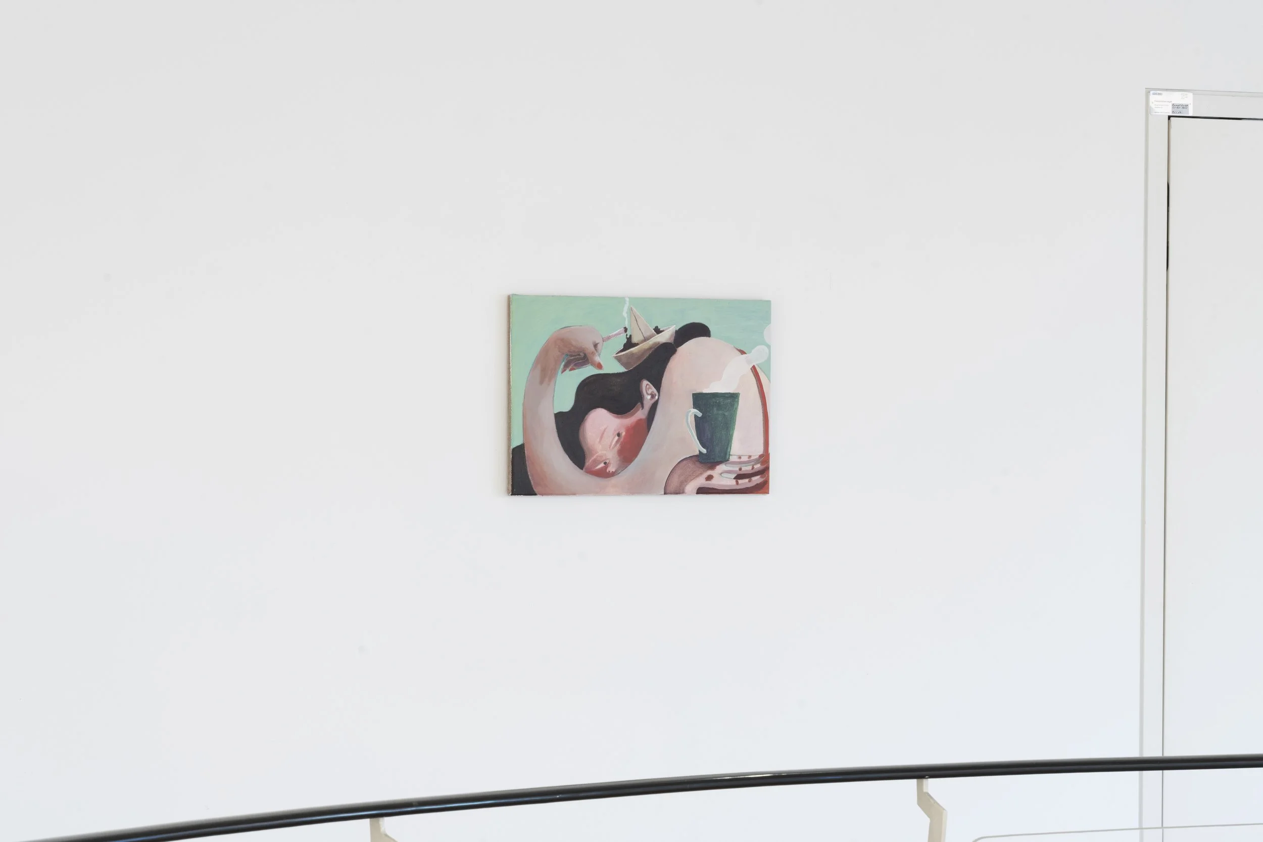 Jeehye Song’s pictorial themes are closely tied to her everyday life and personal feelings. Yet through a sense of self-ironic humor, she creates a certain distance that allows the viewer to reframe the depicted moods and situations, breaking through the self-referential stillness.